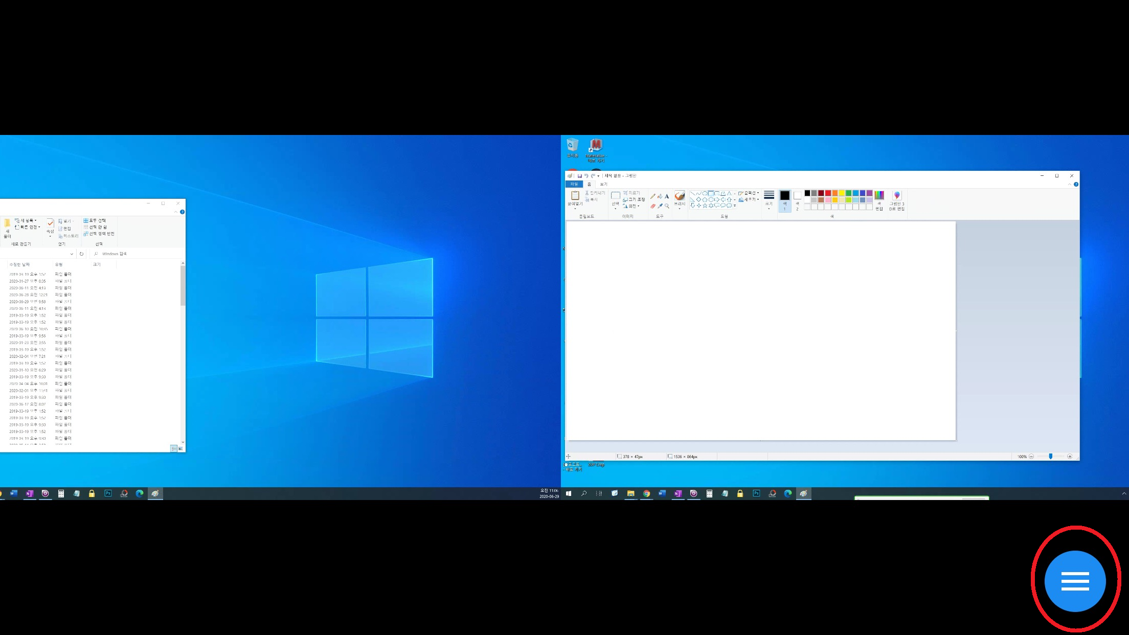 만약에 2개 이상의 모니터를 사요하고 있다면, 드래그, 핀치(꼬집기?)를 해서 화면을 줄이거나, 이동할 수 있다.
