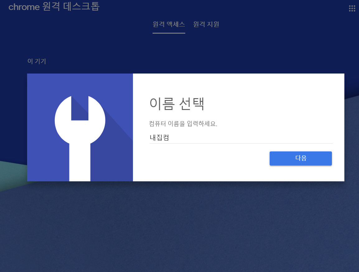 이름을 선택하라고 나온다. 나는 '내집컴'이라고 했다. 사용중인 '이 컴퓨터'의 별명을 특정하기 위한 것이다.