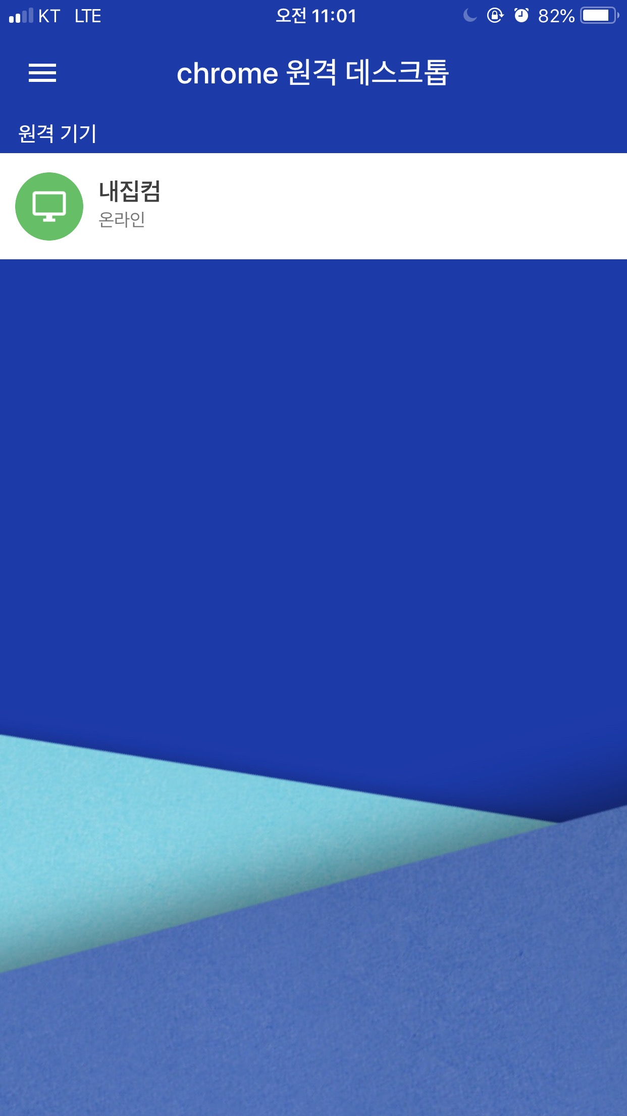 해당 앱을 열면 구글계정으로 로그인할 것인지 물어올 수 있다. PC의 크롬에 로그인된 것과 같은 계정으로 로그인을 하자. 만일 자동으로 정상 로그인이 되었다면, 아래와 같이 PC에서 설정해둔 컴퓨터 별명이 뜬다.