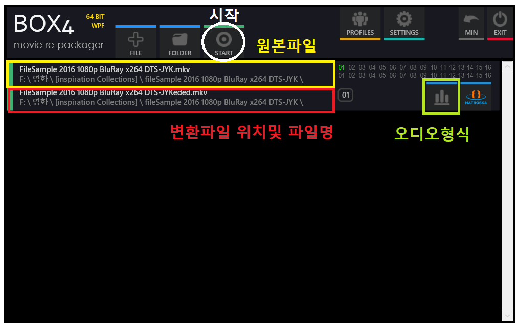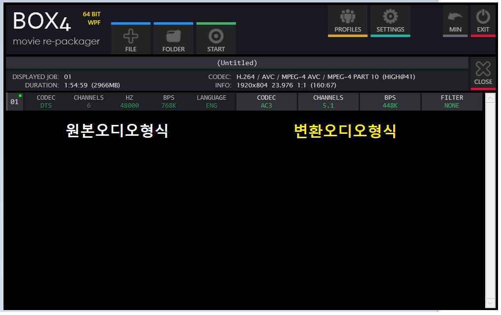 영상파일의 DTS 오디오를 AAC나 AC3로 변경 - BOX4 프로그램